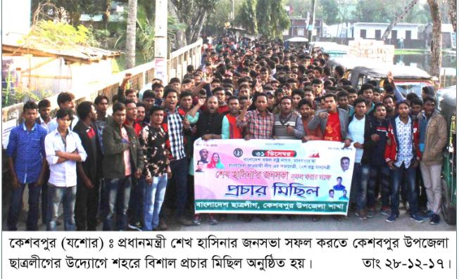 এস আর সাঈদ, কেশবপুর (যশোর) : প্রধানমন্ত্রী শেখ হাসিনার আগামী ৩১ ডিসেম্বর যশোরে জনসভা সফল করতে কেশবপুর উপজেলা ছাত্রলীগের উদ্যোগে …