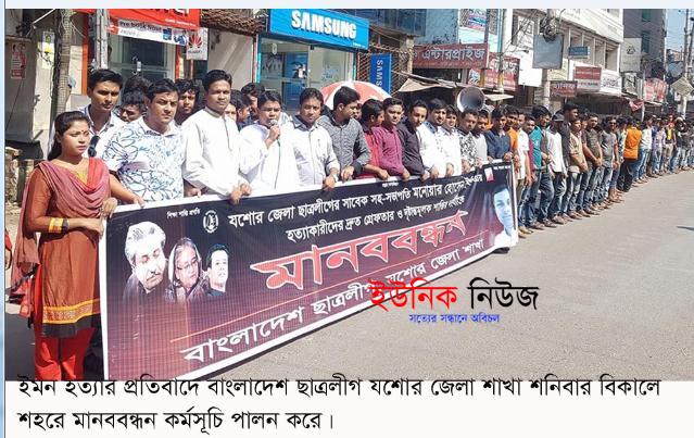 রবিউল ইসলাম মিটু, যশোর : যশোর জেলা ছাত্রলীগের সাবেক সহ সভাপতি মনোয়ার হোসেন ইমন হত্যার বিচার দাবিতে মানববন্ধন হয়েছে। শনিবার …