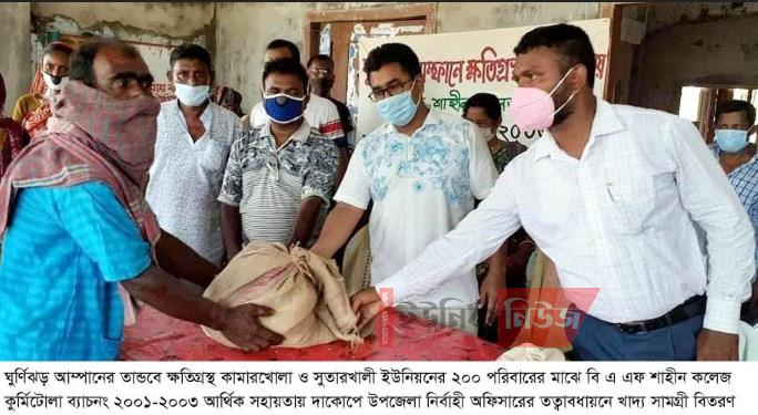 আজগর হোসেন ছাব্বিরঃ ঘুর্ণিঝড় আম্পানের তান্ডবে ক্ষতিগ্রস্থ কামারখোলা ও সুতারখালী ইউনিয়নের ২০০ পরিবারের মাঝে বিএ এফ শাহীন কলেজ কুর্মিটোলা ব্যাচ …